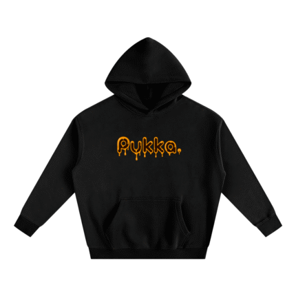 PUKKA – Nah Den – Hoodie A black loose-fit hoodie featuring a dripping Pukka chest logo and a large “Nah