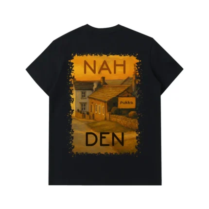 Pukka – Nah Den – T-shirt A black loose-fit tee featuring a dripping Pukka chest logo and a large countryside-style